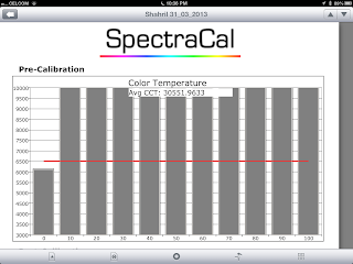 As you can see from these 2 plots, I have been 'enjoying' good BD imaging with blue as the dominant colour while Red and Green are either way off the scale or non existence. And I was also 'enjoying' a very warm image as the temperature across the spectrum was up to and even beyond 10000 deg Kelvin. The threshold for ISF standard is at about 6500 deg Kelvin.