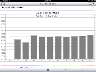 To cut the story short, the following are the post-calibration plots. As you can, the RGB balance is there and the temperature profile is at average 6500 deg Kelvin across the spectrum.
