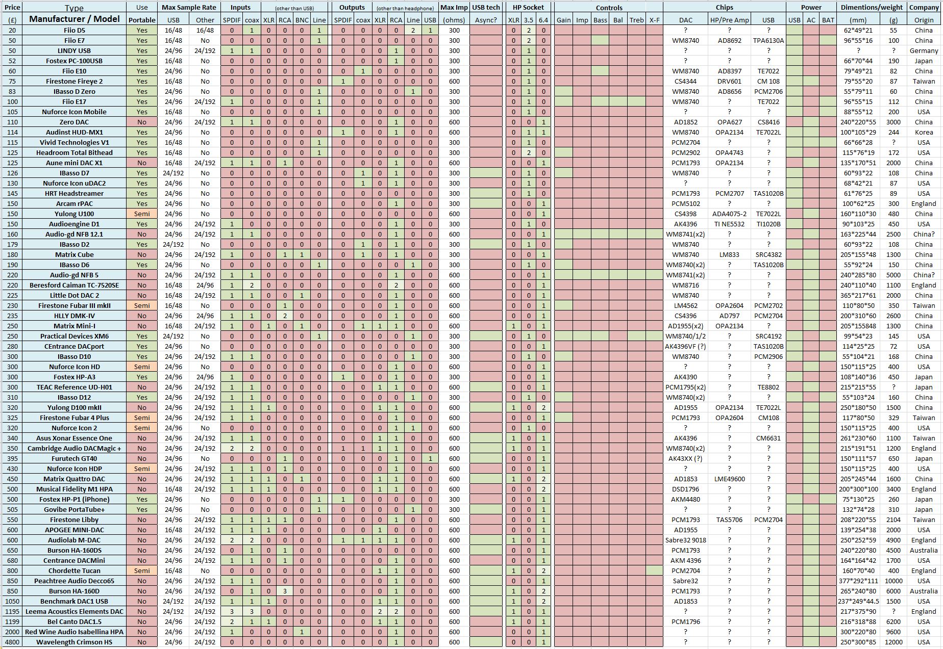 A small update to the DAC / amp list. Added a 'Red Wine Isabellina' & a couple models from 'Audio-GD'.